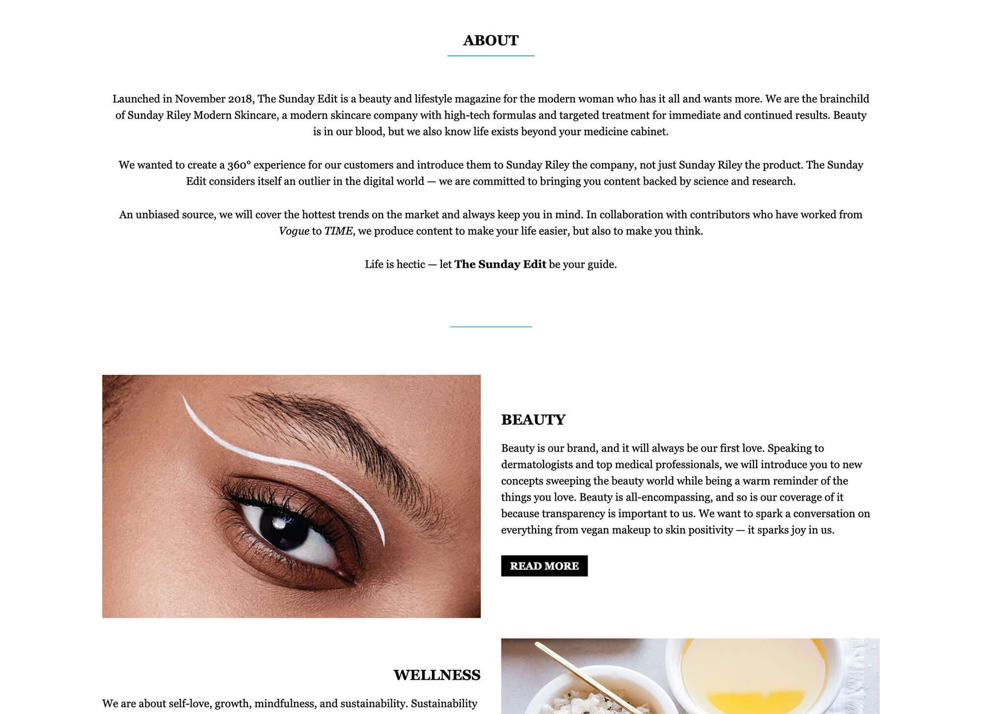 The Sunday Edit is the communication portal for Sunday Riley’s line of high-performance skincare products.